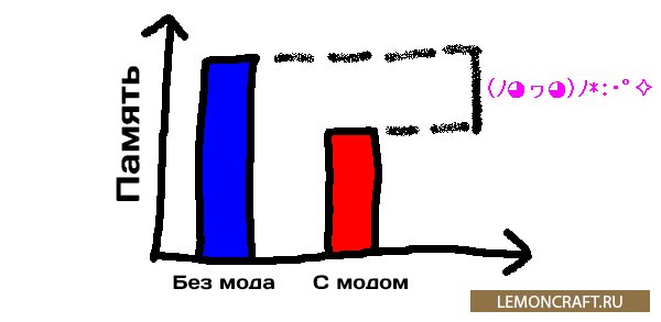 Мод FoamFix предназначен для оптимизации игры и уменьшения потребления оперативной памяти, снижения FPS. С помощью этого мода потребления Java Heap можно снизить аж до 50%. Если ваш комп конкретно тормозит во время игры, попробуйте установить данный мод и вы увидите разницу.